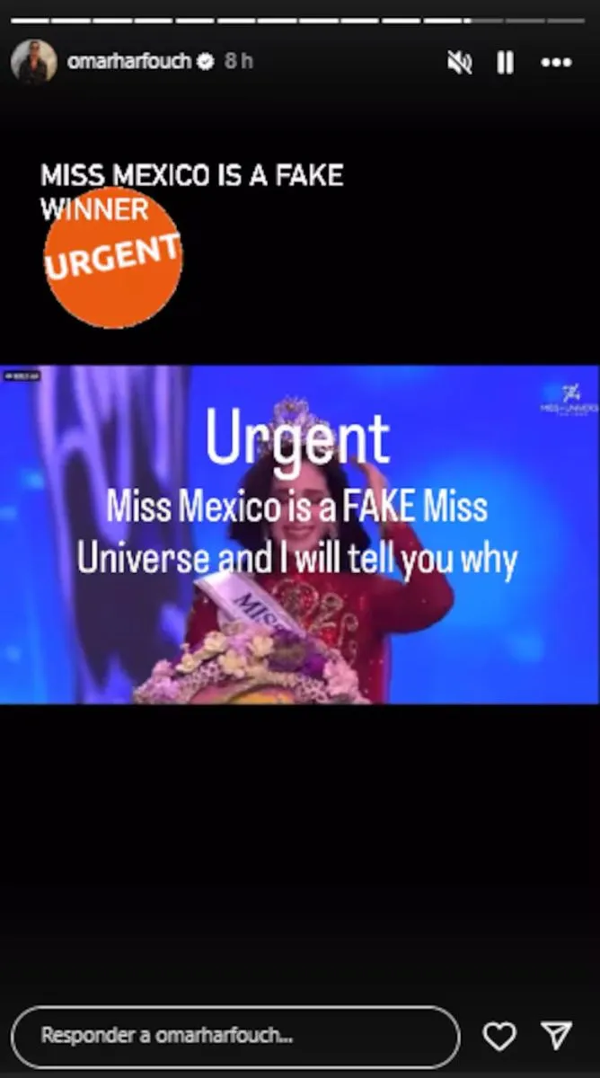 La polémica siguió escalando luego de que Harfouch compartiera un clip del público abucheando la coronación, acompañado por la frase: “The audience is not happy about the fake winner”, insinuando que la reacción en el recinto también habría evidenciado el descontento general. Pese a las declaraciones, la organización de Miss Universo respondió que el proceso fue legítimo y que “todos los protocolos son transparentes y supervisados”.