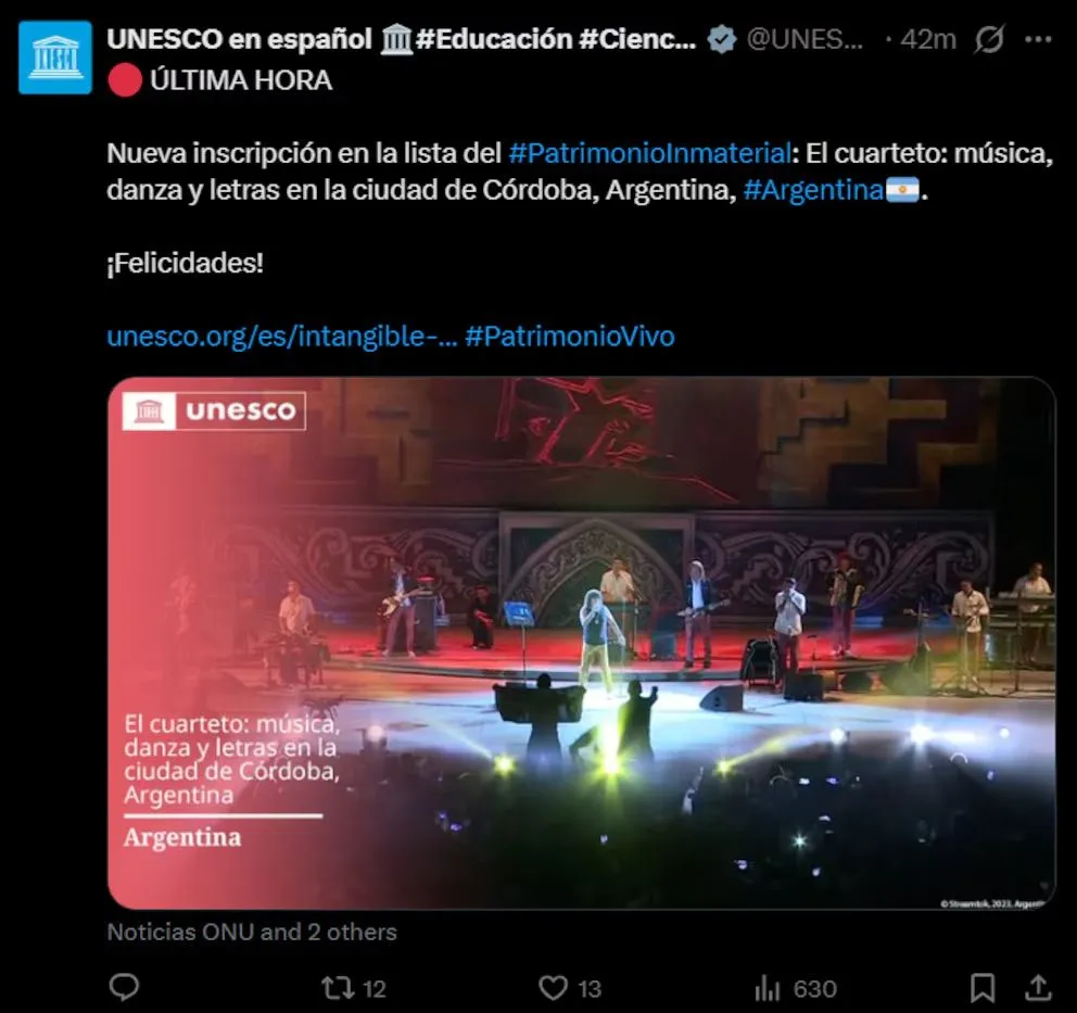 El cuarteto se suma a otras expresiones argentinas reconocidas por la UNESCO, como el tango y el chamamé. El reconocimiento reafirma que el patrimonio cultural del país incluye géneros populares, urbanos y vivos, que conectan generaciones y fortalecen la identidad colectiva.