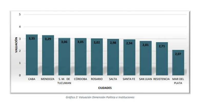 Cada una de estas dimensiones fue desagregada en 31 variables clave y, a su vez, en 159 indicadores específicos, permitiendo un análisis tanto cuantitativo como cualitativo. Del total de ciudades incluidas en el informe, ocho son capitales provinciales, Ciudad Autónoma de Buenos Aires, Córdoba, Santa Fe, Mendoza, San Miguel de Tucumán, Salta, San Juan y Resistencia, mientras que Rosario y Mar del Plata se destacan como los únicos grandes centros urbanos que no son capitales.