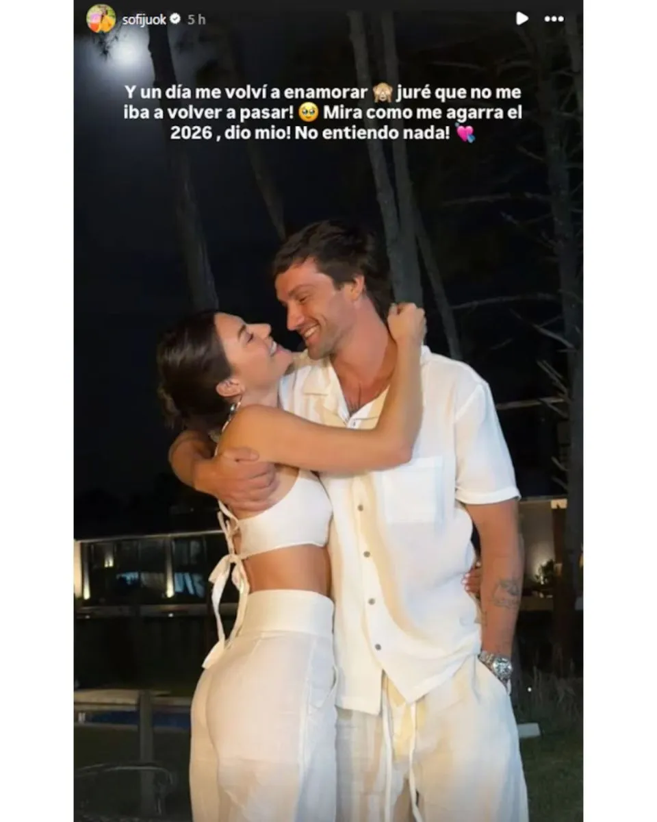 El anuncio se realizó a través de un video publicado en Instagram, donde Jujuy apareció vestida de blanco y sumándose a un tradicional ritual de Año Nuevo que simboliza la llegada del amor. En las imágenes se la vio junto a un joven cuya identidad prefirió mantener en reserva, intercambiando gestos de cariño para recibir el nuevo año. La publicación se completó con otra frase que despertó entusiasmo: “Tengan cuidado con lo que intencionan, el 2026 viene con todo parece. Arranqué el año de novia. WOW”.