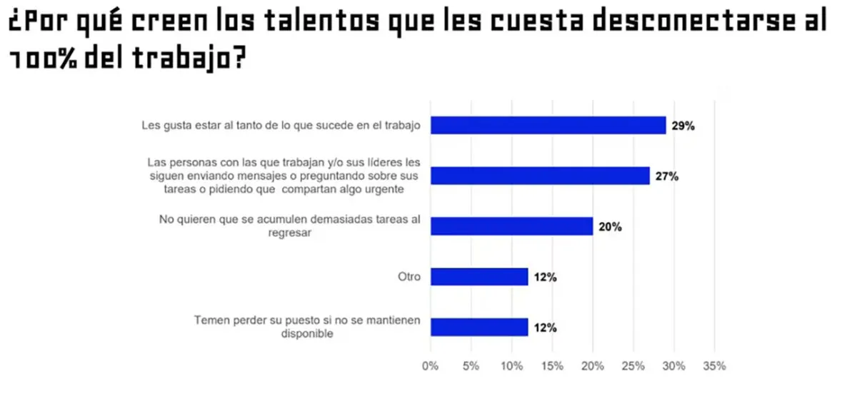 Otro dato relevante es la dificultad para desconectarse del trabajo durante el descanso. El 45% de los trabajadores aseguró que no logra cortar completamente con sus tareas laborales en vacaciones: el 30% revisa mensajes o correos de manera ocasional, el 11% continúa con algunas gestiones y el 4% sigue trabajando casi con normalidad. Además, el 56% consideró que los días adicionales de vacaciones son un factor clave al evaluar una oferta laboral, y el 95% opinó que este beneficio debería ser ofrecido por todas las organizaciones.