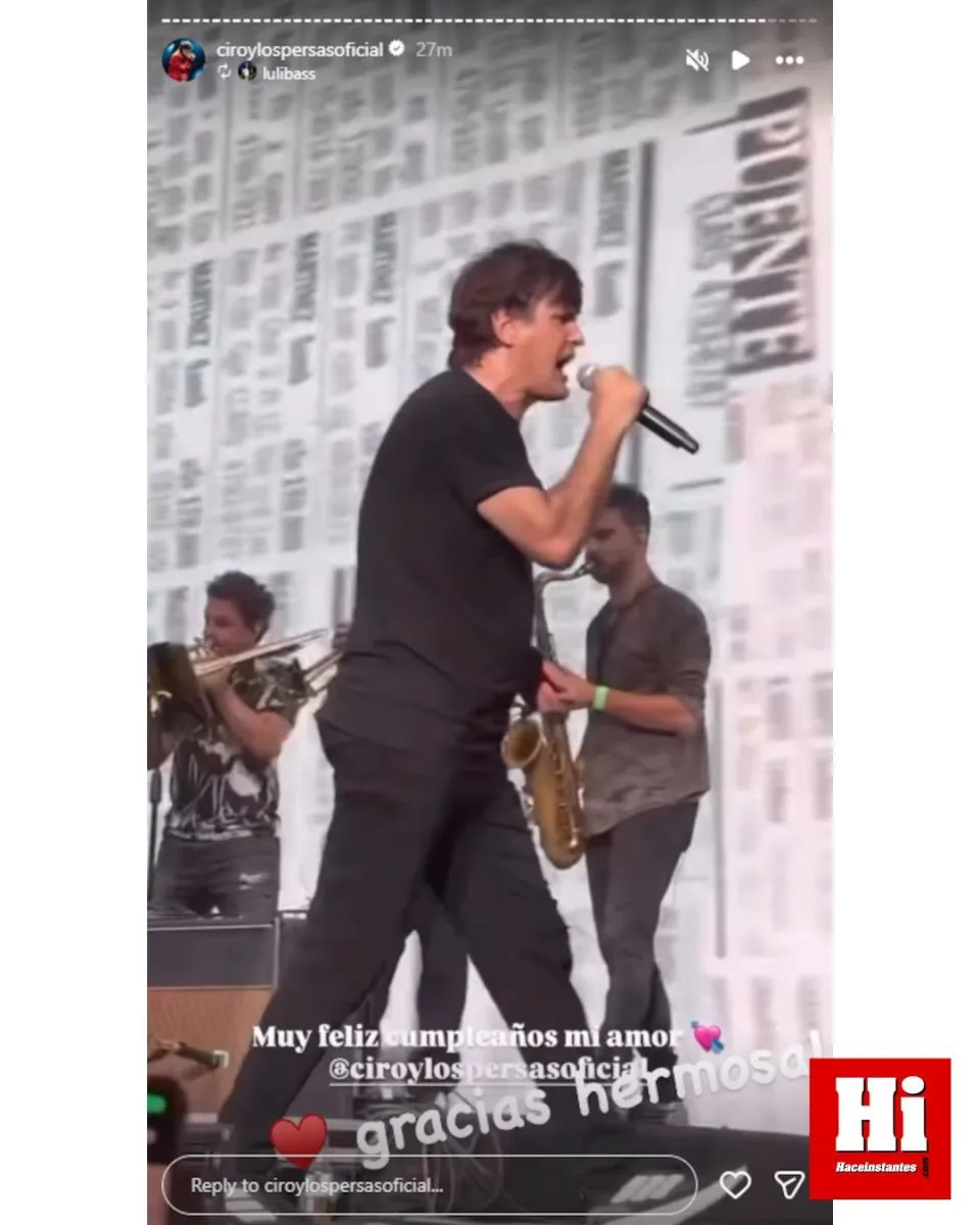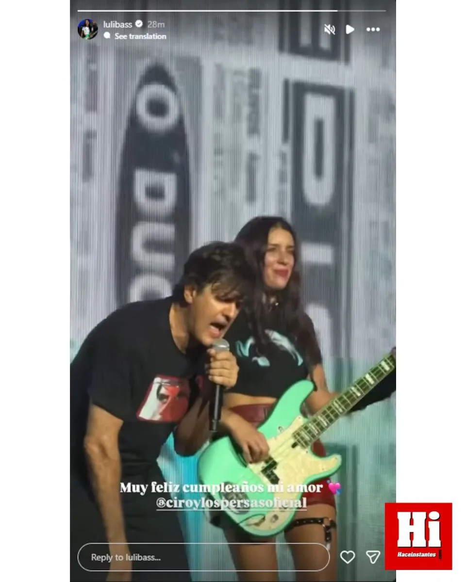 La confirmación llegó en una fecha especial: el cumpleaños del líder de la banda. A una semana de que ambos se convirtieran en tendencia, Luciana Valdés, nombre real de la bajista, de 35 años, decidió blanquear la relación a través de sus historias de Instagram. Allí compartió una imagen junto a Ciro sobre el escenario y escribió: “Muy feliz cumpleaños, mi amor”, acompañado por un corazón rosa atravesado por una flecha, gesto que rápidamente se viralizó.