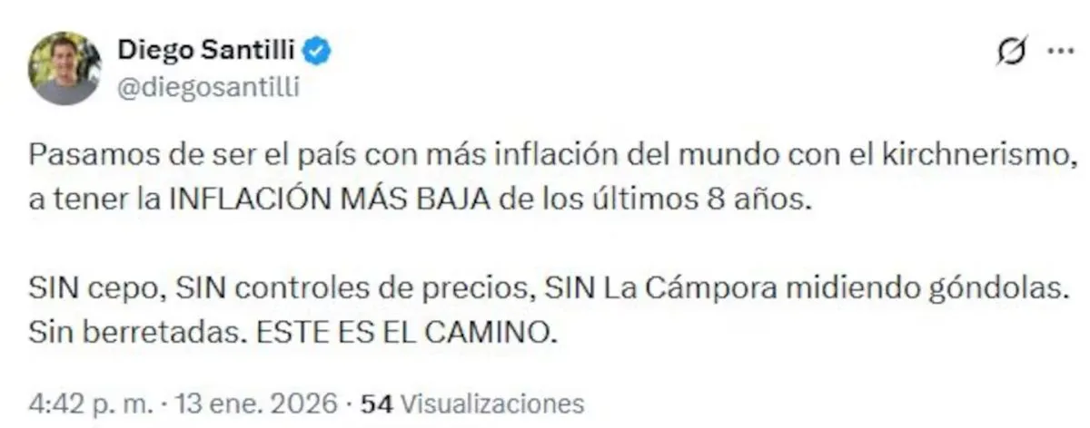 En la misma línea, el jefe de Gabinete, Manuel Adorni, remarcó el contraste con el escenario heredado: “Cuando asumimos, la inflación del 2023 había sido del 211,4%, la más alta del mundo”. Y sentenció: “Esto no es ni más ni menos que el resultado de haber hecho lo que había que hacer”. También el ministro del Interior, Diego Santilli, reforzó el mensaje oficial al señalar: “Pasamos de ser el país con más inflación del mundo con el kirchnerismo, a tener la inflación más baja de los últimos 8 años”.