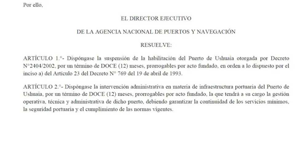 La decisión quedó formalizada este martes mediante la Resolución 4/2026, firmada por el titular de la ANPyN, Iñaki Arreseygor. Desde el Gobierno explicaron que la intervención se resolvió “como resultado de la falta de respuestas concretas ante las inspecciones efectuadas, las denuncias de vaciamiento realizadas por los trabajadores y la preocupación de las empresas navieras que allí operan”. El organismo nacional remarcó que las observaciones surgieron tras reiteradas auditorías y reclamos internos.