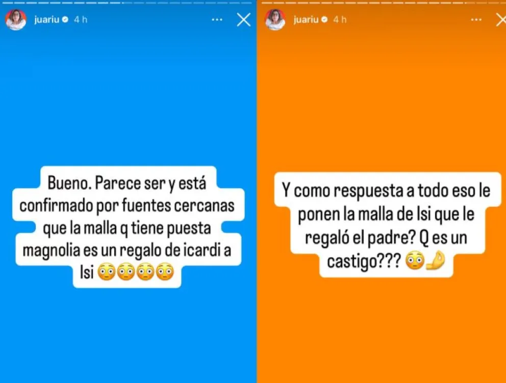 El conflicto se habría originado por comentarios que Juariu realizó sobre la celebración, que tuvo lugar en la denominada “casa de los sueños” de Mauro Icardi. La periodista analizó imágenes del evento y señaló un detalle que generó polémica: “Parece ser y está confirmado por fuentes cercanas que la malla que tiene puesta Magnolia es un regalo de Icardi a Isi”. Luego redobló la apuesta con otra historia: “¿Cómo respuesta a todo eso le ponen la malla de Isi que le regaló el padre? ¿Es un castigo?”. Esas frases desataron la reacción inmediata de la actriz.