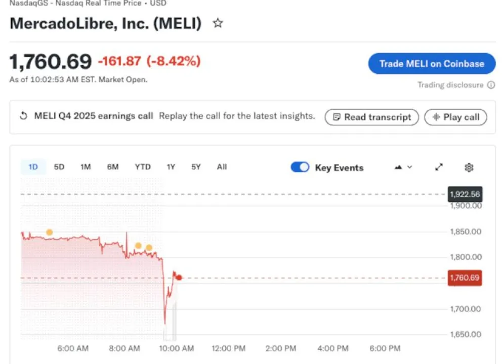 La compañía de comercio electrónico reportó ingresos por USD 8.760 millones en el último trimestre, lo que implicó un crecimiento interanual del 44,6% y superó en 3,2% las previsiones de los analistas. El desempeño estuvo apuntalado por la incorporación de 16 millones de nuevos compradores activos en el período. Sin embargo, pese al sólido avance en ventas, el mercado reaccionó negativamente: la acción se hunde 8% en Nueva York luego de que las ganancias por acción bajo normas GAAP alcanzaran los USD 11,03, por debajo de los USD 11,44 esperados. Además, el margen operativo descendió al 10,1%, frente al 13,5% del año previo, lo que encendió alertas sobre la rentabilidad.