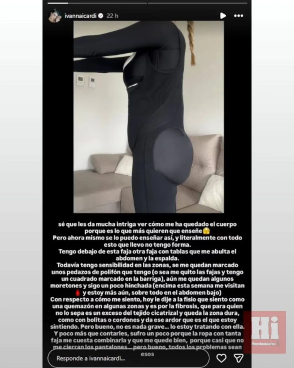 “Sé que les da mucha intriga ver cómo me ha quedado el cuerpo porque es lo que más quieren que enseñe”, expresó al iniciar su descargo. Sin embargo, aclaró que todavía no puede exhibir los cambios como le gustaría: “Ahora mismo se lo puedo enseñar así, literalmente con todo esto que llevo no tengo forma”. Ivana explicó que debe utilizar una faja postquirúrgica y, debajo, otra con tablas que generan volumen en la zona abdominal y en la espalda, alterando completamente su silueta actual.