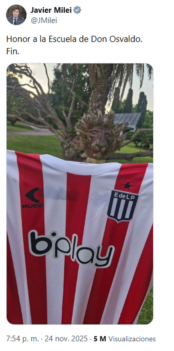 Los hinchas de Estudiantes se llevaron una gran sorpresa este sábado a raíz de un extraño mensaje en la cuenta oficial del club en la red social X promocionando el supuesto lanzamiento de una nueva criptomoneda, lo que encendió las alarmas sobre un posible hackeo en sus plataformas. En el perfil verificado de X (@EdelpOficial), apareció un tuit fijado que decía textualmente: "We released our coin on pumpfun!" (¡Lanzamos nuestra moneda en pumpfun!). La publicación estaba acompañada de un enlace engañoso hacia un sitio externo con el título "Estudiantes Coin". Esta acción inusual se ubicó por encima de la información institucional habitual del equipo platense, como las imágenes del entrenamiento de cara al partido del próximo martes contra Gimnasia de Mendoza. La extraña naturaleza del mensaje y el idioma utilizado hicieron suponer rápidamente a los usuarios que la cuenta fue vulnerada por piratas informáticos para realizar una estafa vinculada a los activos digitales. La afinidad del presidente con el club de La Plata no es un secreto. Hace poco tiempo, Javier Milei publicó en su cuenta personal una fotografía sosteniendo la camiseta oficial del equipo (de la marca RUGE), con la imponente figura de un león de fondo. "Honor a la Escuela de Don Osvaldo. Fin", escribió el mandatario, en una clara reivindicación a la filosofía de trabajo de Osvaldo Zubeldía, basada en el mérito, la táctica y el esfuerzo.