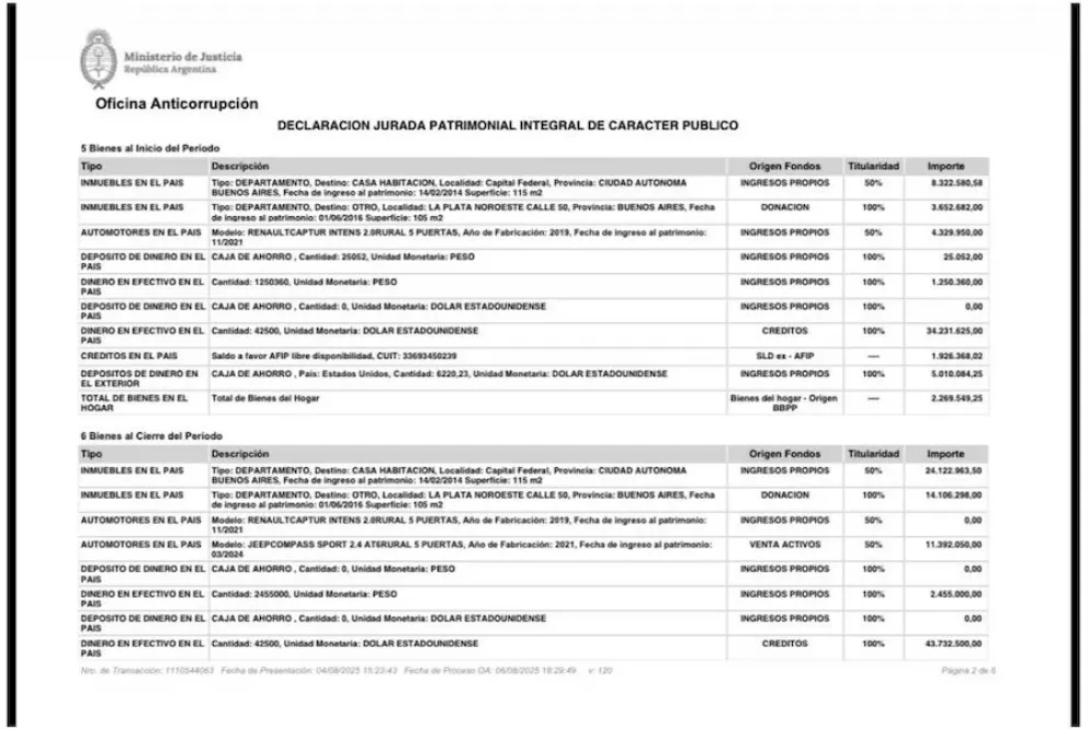 Esta ampliación se suma a la primera denuncia de Pagano, que ya investigaba al jefe de Gabinete por presunta omisión de su Declaración Jurada Patrimonial del ejercicio 2025, reforzando la investigación sobre posibles irregularidades en su patrimonio.