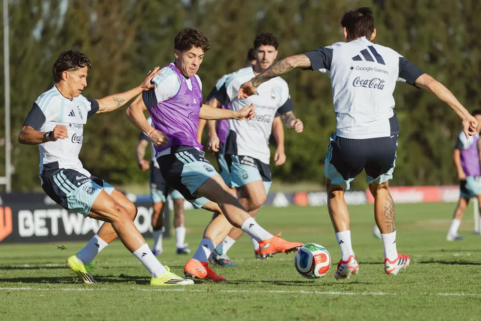 La práctica se desarrolló a puertas cerradas e incluyó trabajos con pelota y ejercicios de campo enfocados en el funcionamiento colectivo. Fue el primer ensayo formal de la semana, donde Scaloni empezó a evaluar variantes y posibles formaciones.