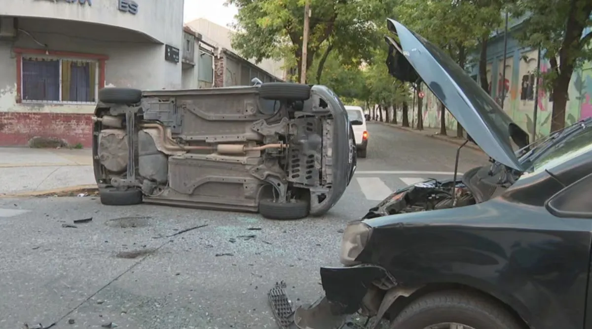 Choque en Barracas: un auto volcó tras un impacto y dos personas resultaron heridas