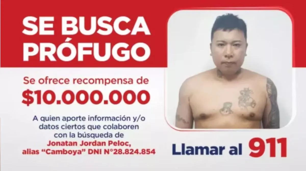 Un interno identificado como Jonatan Jordán Peloc, alias “Camboya”, es intensamente buscado luego de protagonizar una fuga de una cárcel en la provincia de Salta. El hecho ocurrió el sábado 4 de abril y desde entonces se desplegó un operativo de alcance nacional.