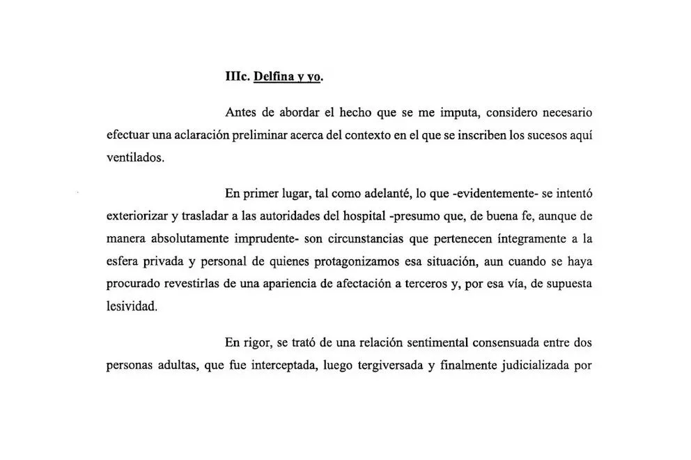 Otro de los ejes del escrito fue su relación con Delfina “Fini” Lanusse, también involucrada en la causa. Boveri reconoció que mantenían un vínculo sentimental y aclaró que se trató de una relación “consensuada”, sin ningún tipo de violencia ni irregularidad. Además, la definió como un lazo de “cariño mutuo” que ambos decidieron manejar con discreción.