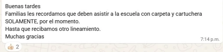 Además, en varios distritos del país se decidió que los alumnos concurran a clases con los útiles en la mano, es decir, sin mochila.