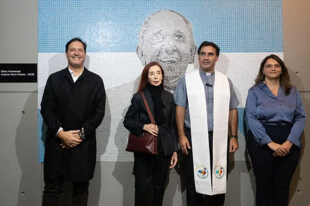La ceremonia contó además con la bendición del párroco Martín Bourdieu, quien acompañó la inauguración de una pieza que se suma a otros homenajes ya presentes en la estación. De este modo, el recuerdo de Francisco continúa integrado al paisaje urbano, conectando su legado espiritual con la rutina diaria de miles de pasajeros.